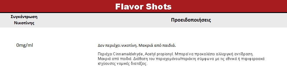 Περιέχει Cinnamaldehyde, Acetyl propionyl. Μπορεί να προκαλέσει αλλεργική αντίδραση. Μακριά από παιδιά. Διάθεση του περιεχομένου/περιέκτη σύμφωνα με τις εθνικά ή περιφερειακά ισχύουσες νομικές διατάξεις.