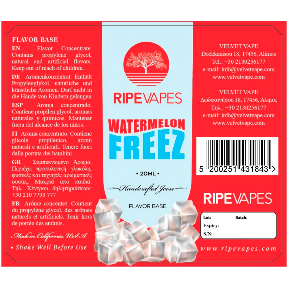 Ripe Vapes Watermelon Freez 20ml to 60ml Flavor