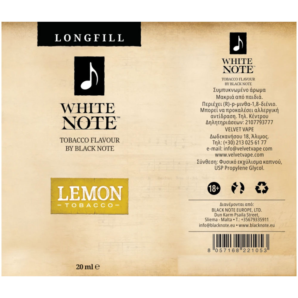 White Note Lemon Tobacco 20ml to 60ml Flavor