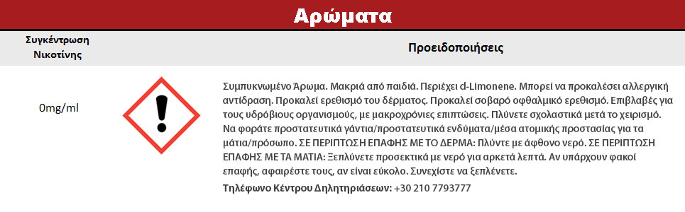 Περιέχει d-Limonene. Μπορεί να προκαλέσει αλλεργική αντίδραση.