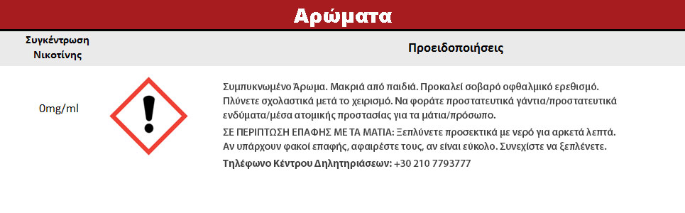 Συστατικά: Συμπυκνωμένο μείγμα αρωμάτων, διαλυμένο σε προπυλενική γλυκόλη (FEMA 2940). Δεν περιέχει ζάχαρη και γλουτένη.