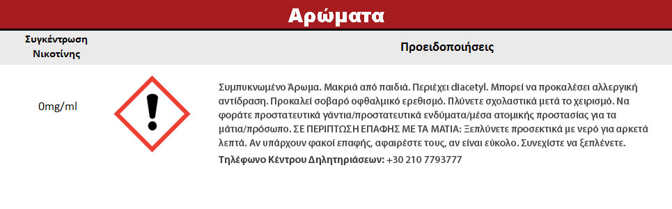 Περιέχει diacetyl. Μπορεί να προκαλέσει αλλεργική αντίδραση.