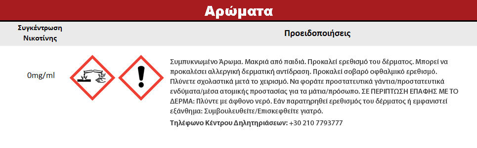 Συστατικά: Συμπυκνωμένο μείγμα αρωμάτων, διαλυμένο σε προπυλενική γλυκόλη (FEMA 2940). Δεν περιέχει ζάχαρη και γλουτένη.