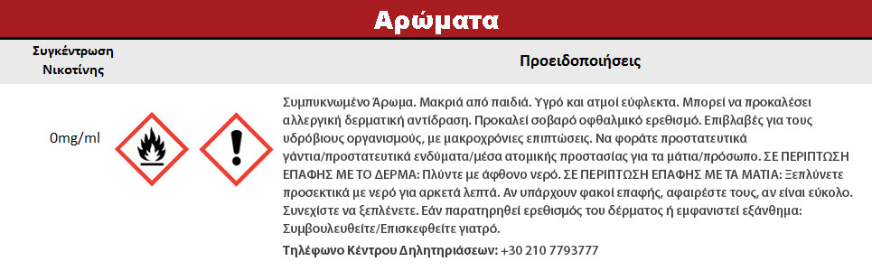 Συστατικά: Συμπυκνωμένο μείγμα αρωμάτων, διαλυμένο σε προπυλενική γλυκόλη (FEMA 2940). Δεν περιέχει ζάχαρη και γλουτένη.