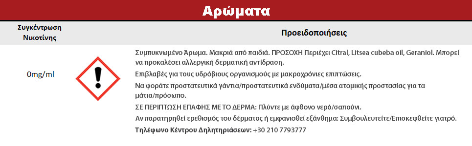 Συστατικά: Υπερσυμπυκνωμένο μίγμα αρωματικών ουσιών.