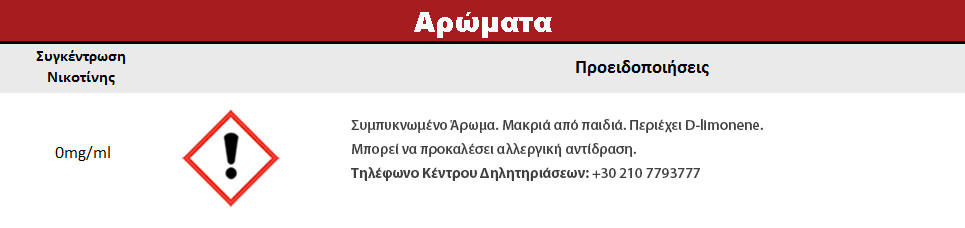 Συστατικά: Συμπυκνωμένο μείγμα αρωμάτων, διαλυμένο σε προπυλενική γλυκόλη (FEMA 2940). Δεν περιέχει ζάχαρη και γλουτένη.