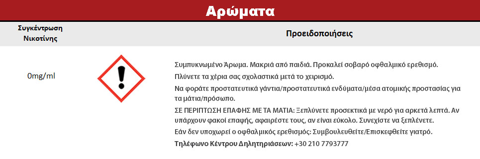 Συστατικά: Συμπυκνωμένο μείγμα αρωμάτων, διαλυμένο σε προπυλενική γλυκόλη (FEMA 2940). Δεν περιέχει ζάχαρη και γλουτένη.